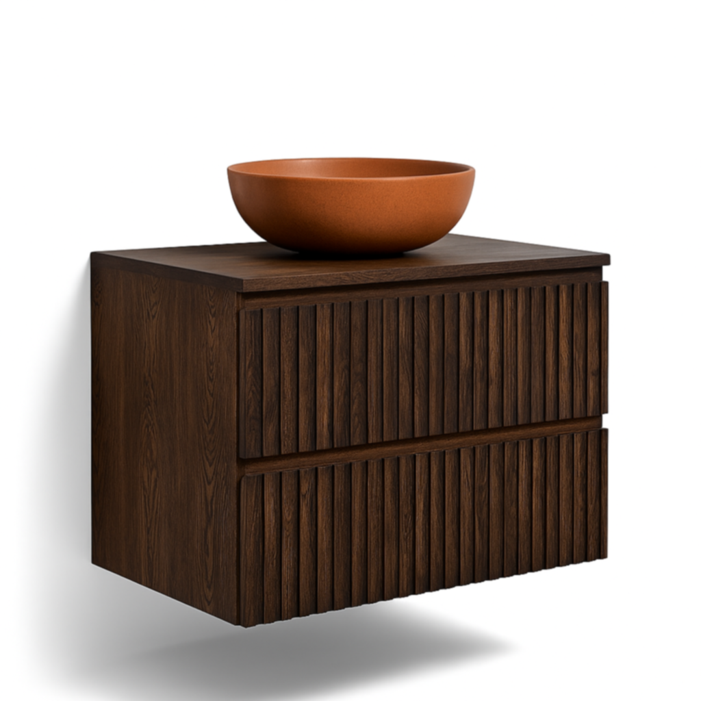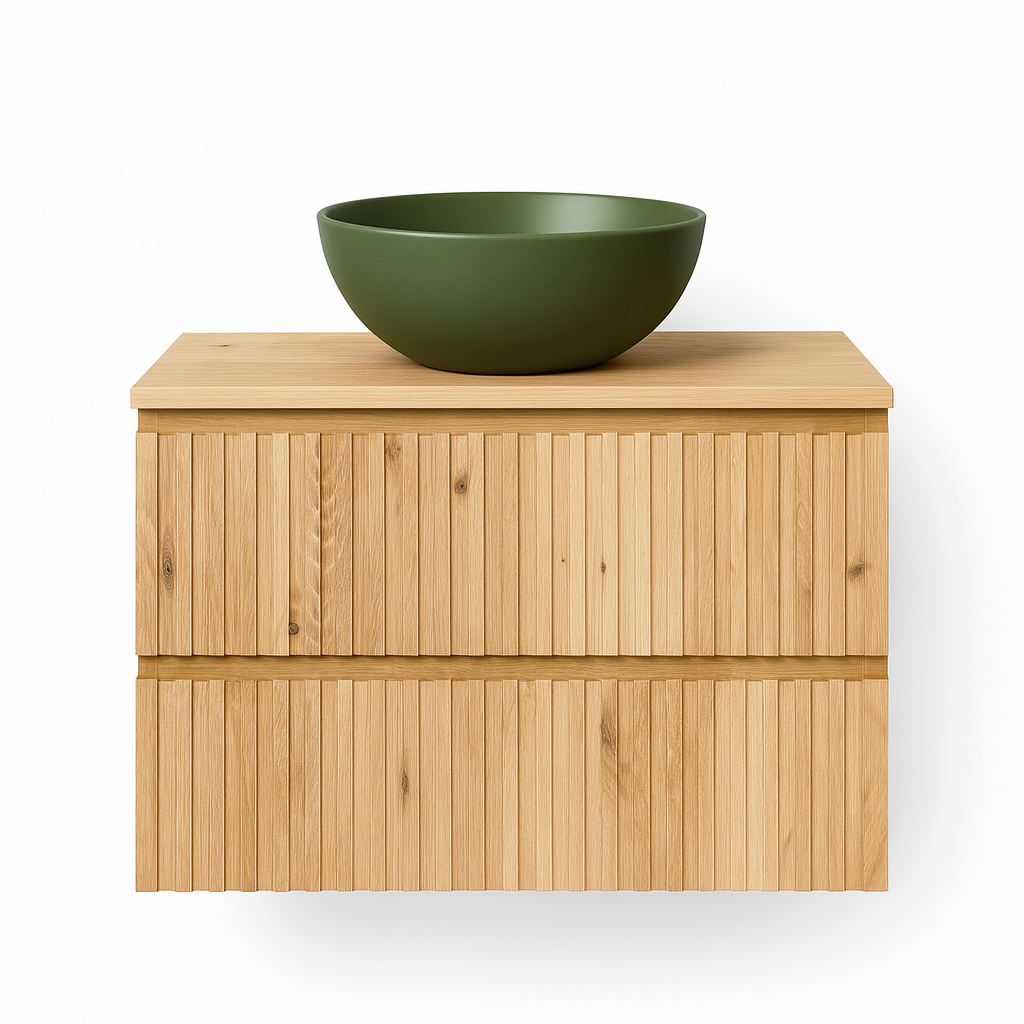 Evi is een prachtig eiken badkamermeubel met een subtiele, minimalistische uitstraling. Maar door de prachtige ribbelfronten is het meubel niet saai. Eikenhout is een natuur product en dit maakt dat iedere plank en daarmee ook ieder meubel uniek is. Haal hiermee de natuur in uw badkamer.