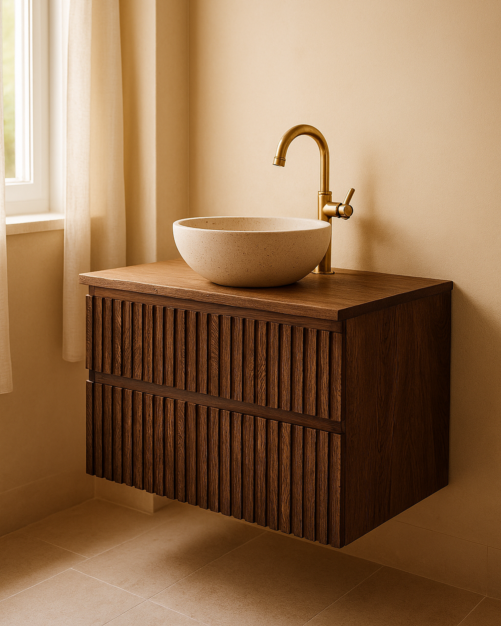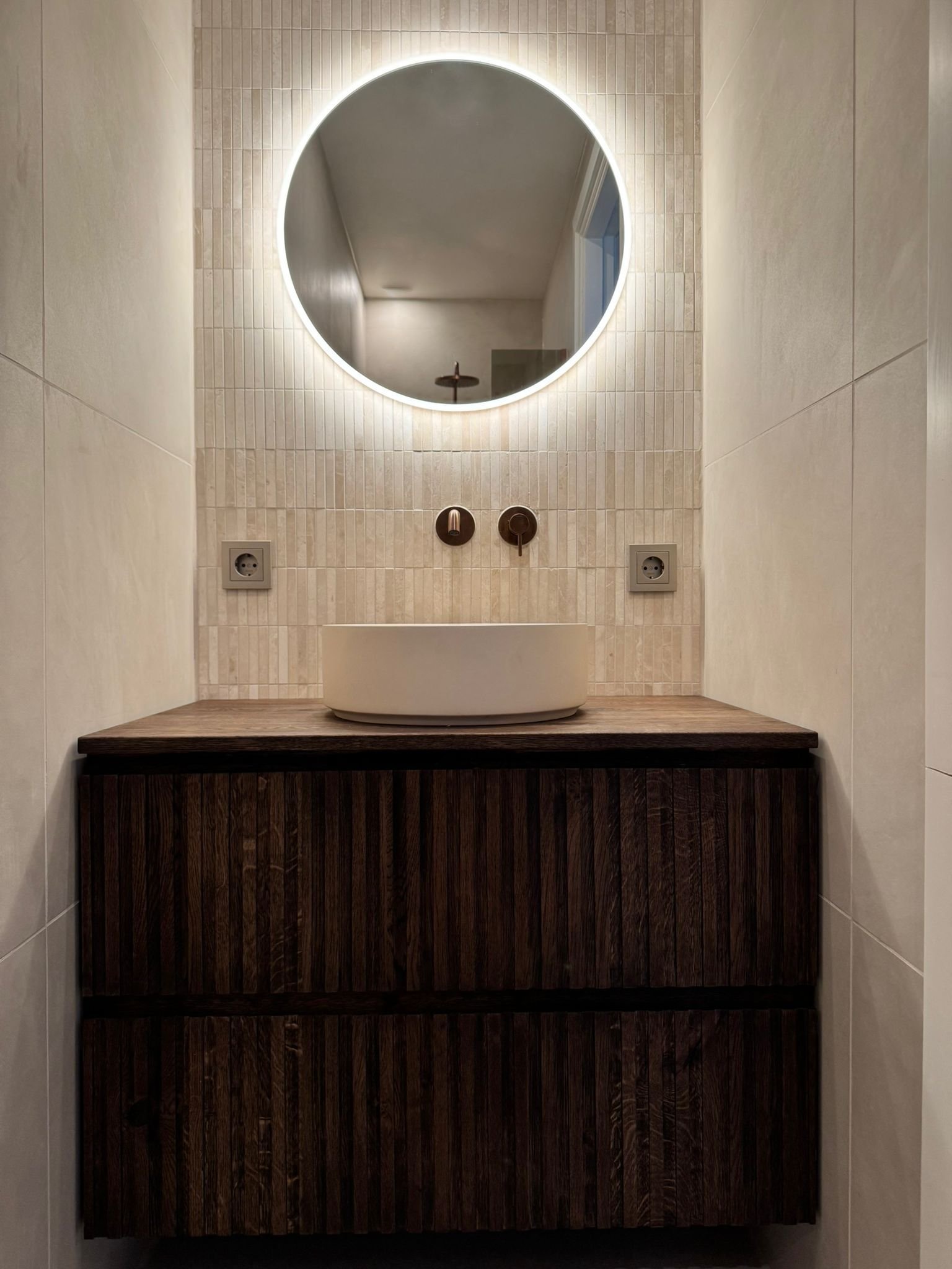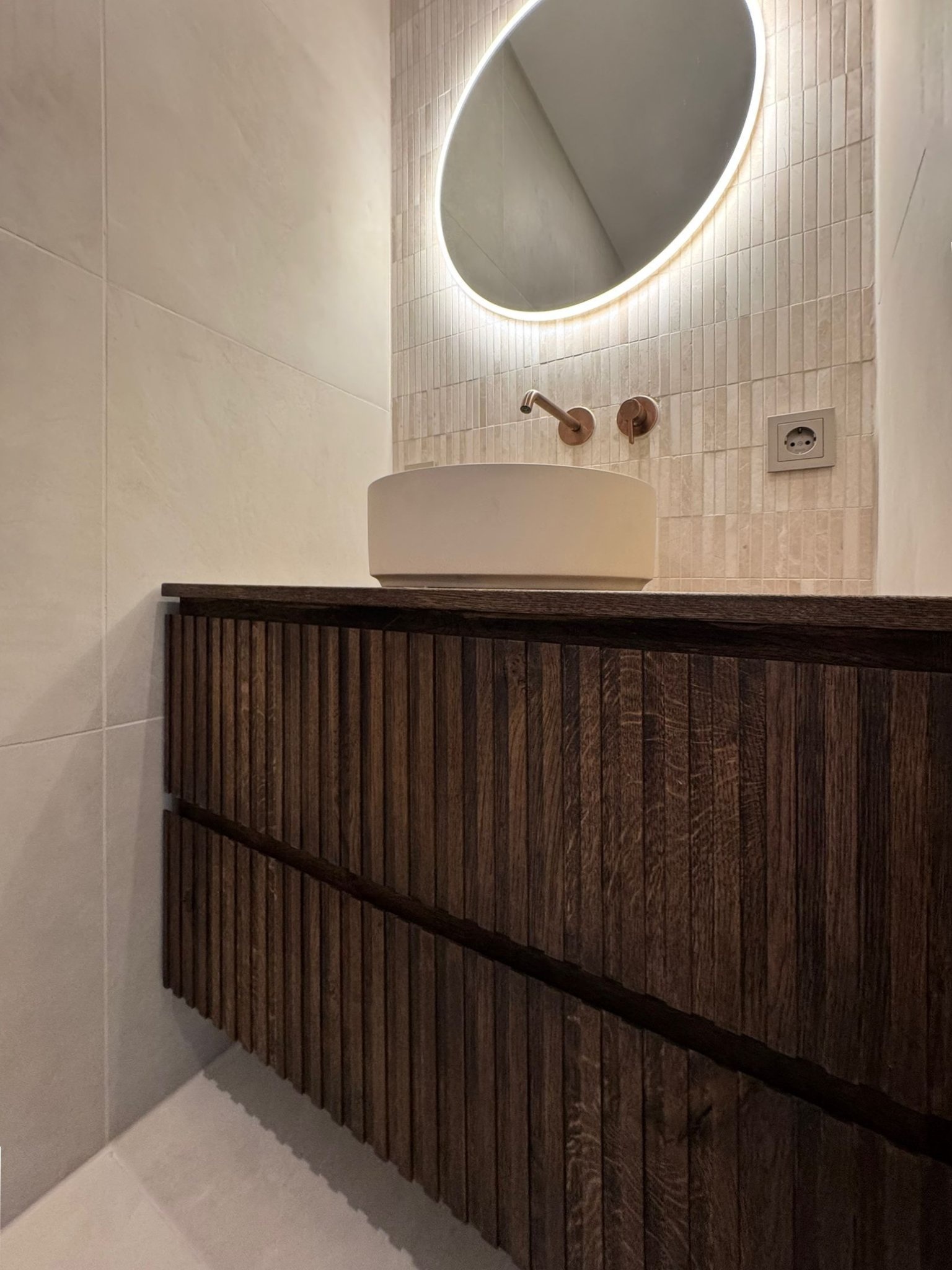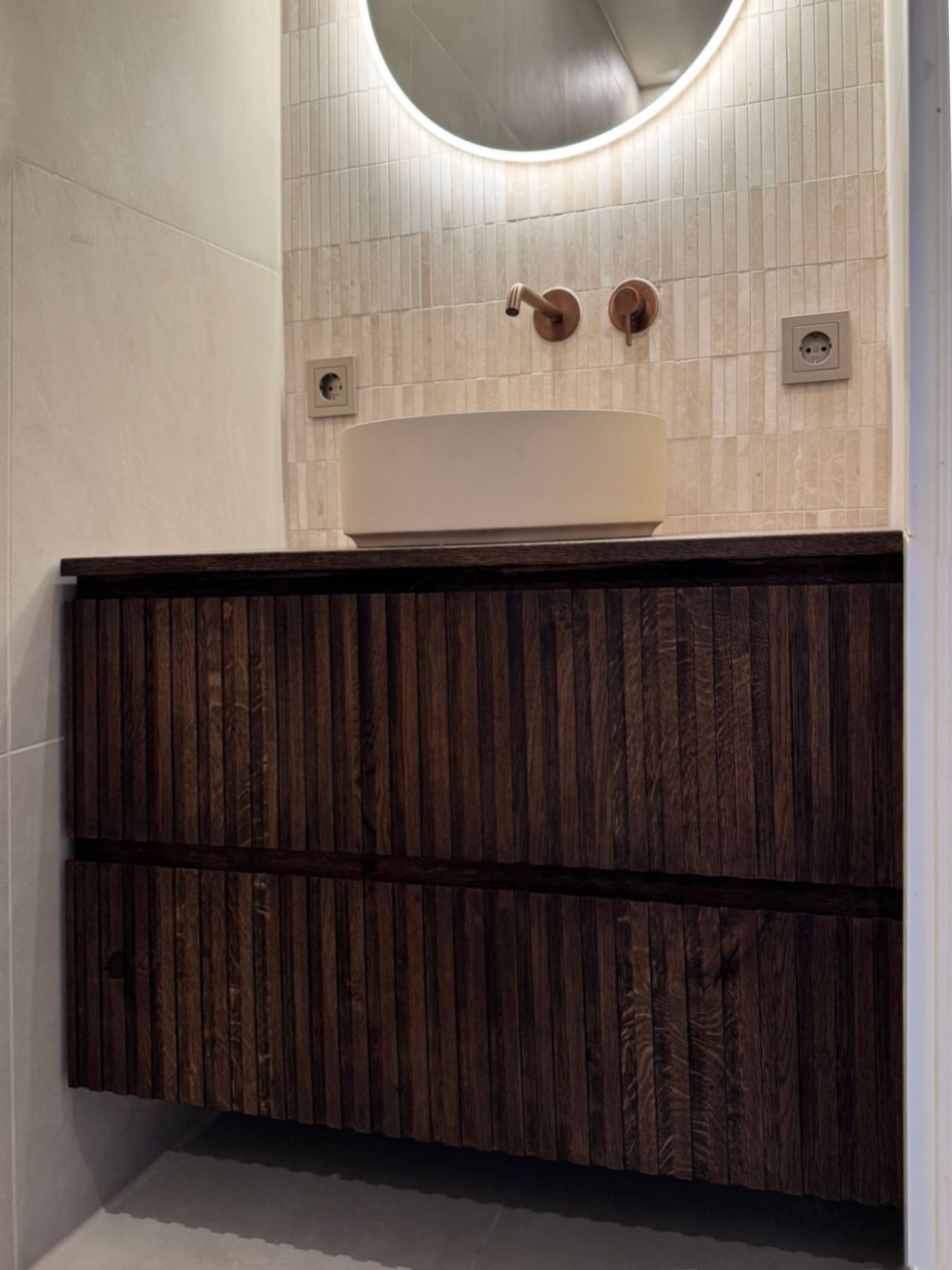 Minimalistisch Eiken Badkamermeubel met Ribbelfronten