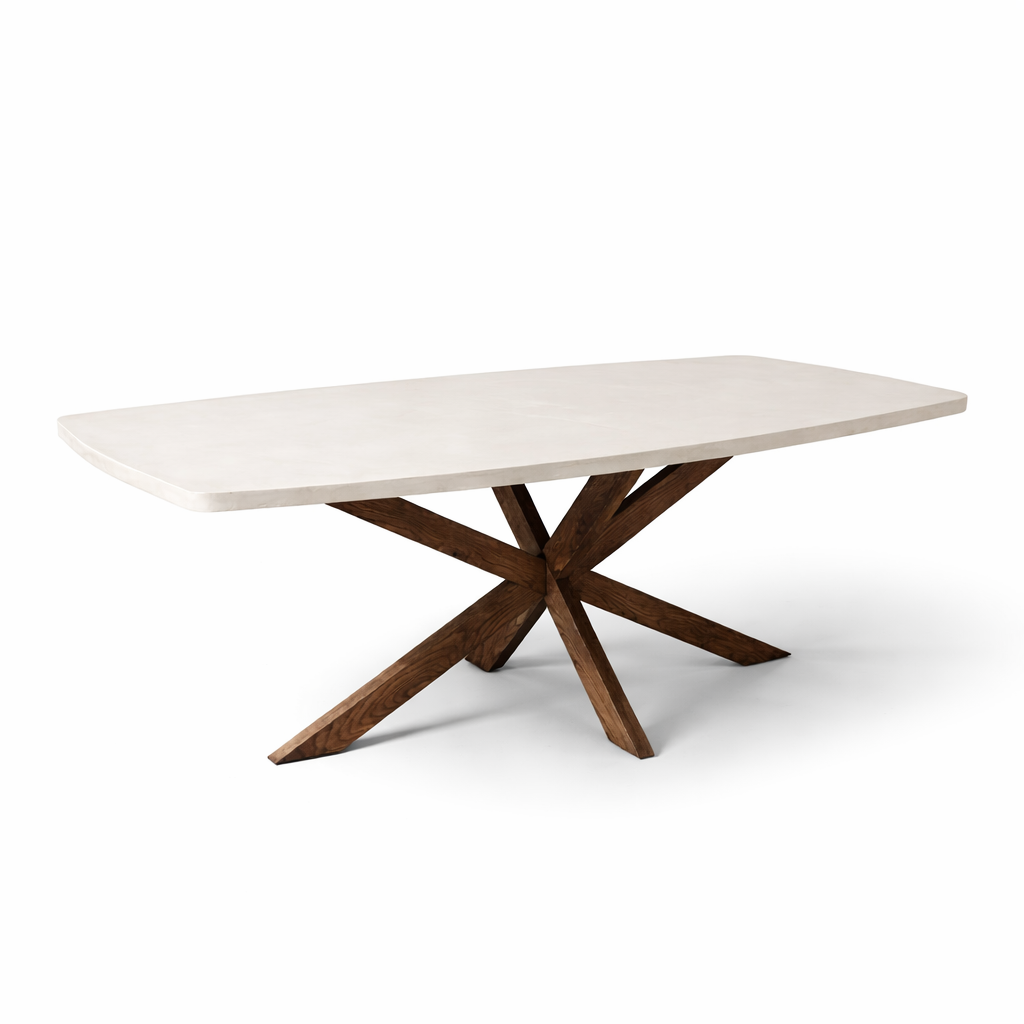 Op zoek naar een unieke eettafel die direct sfeer brengt in jouw interieur? Deze Deens ovale eettafel met beton ciré blad en massief eikenhouten poot combineert moderne elegantie met warme, natuurlijke elementen. Het resultaat is een tijdloze eyecatcher die perfect past binnen populaire woonstijlen zoals Japandi, modern en Scandinavisch.