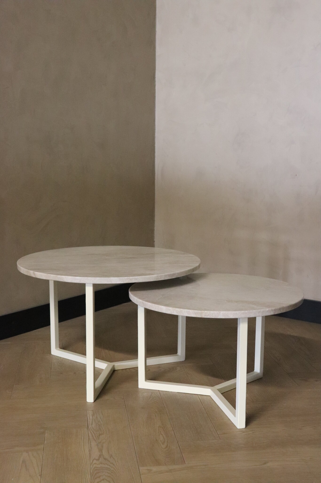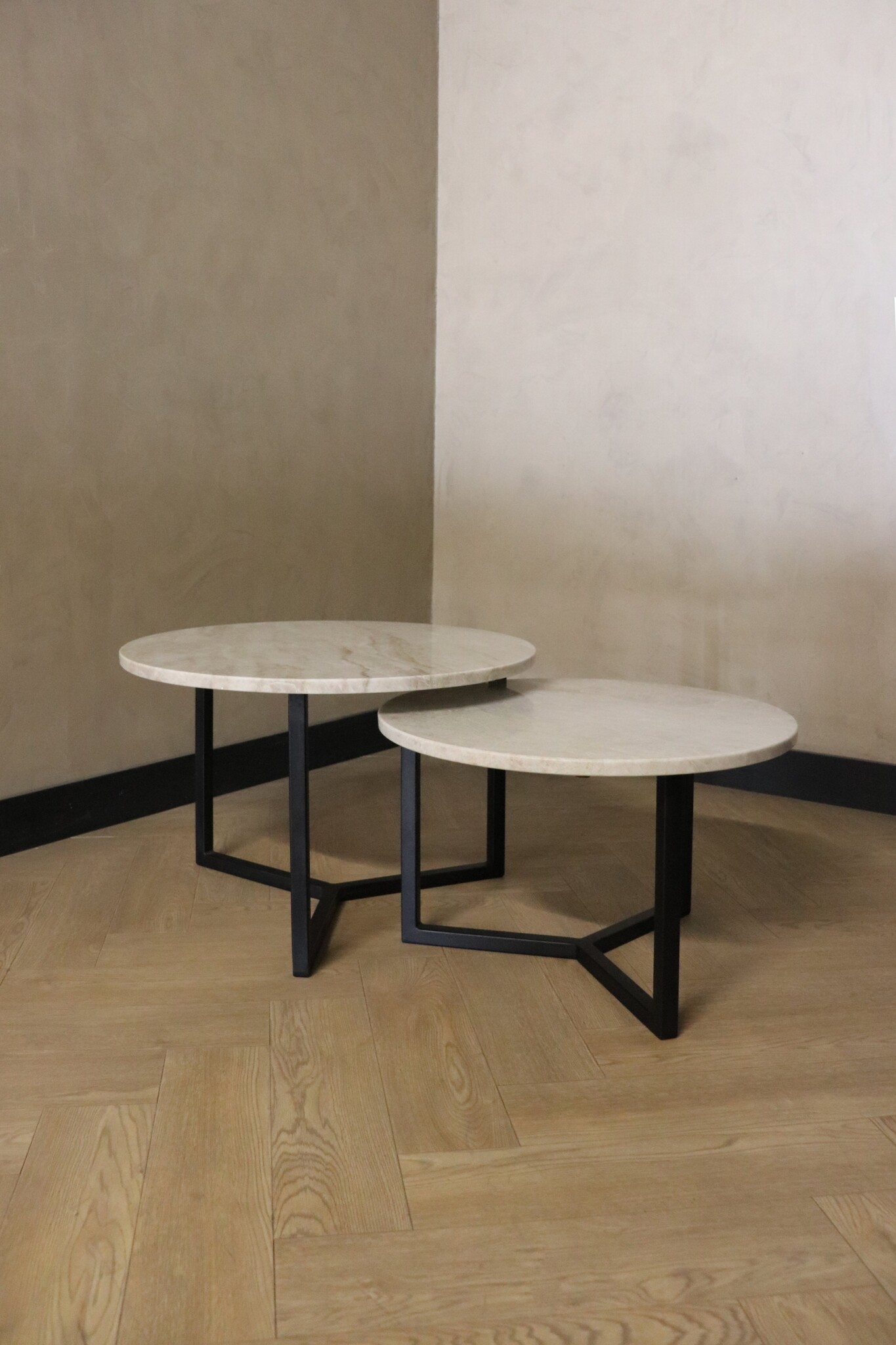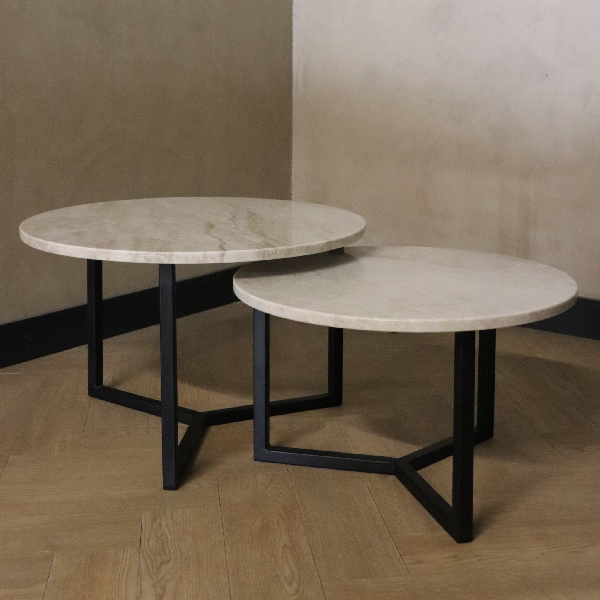 Deze Salontafel Set van 2 Ronde Salontafels is de ultieme toevoeging aan je interieur als je op zoek bent naar luxe en verfijning.