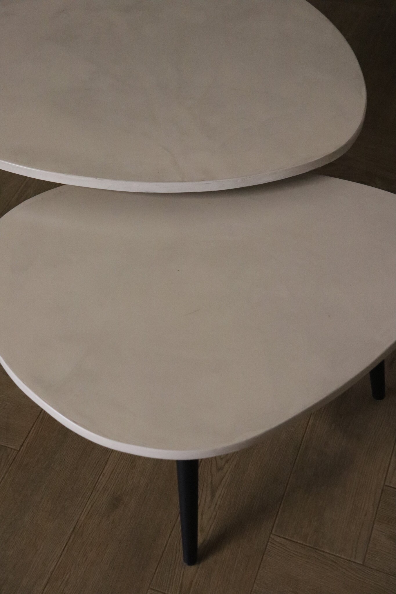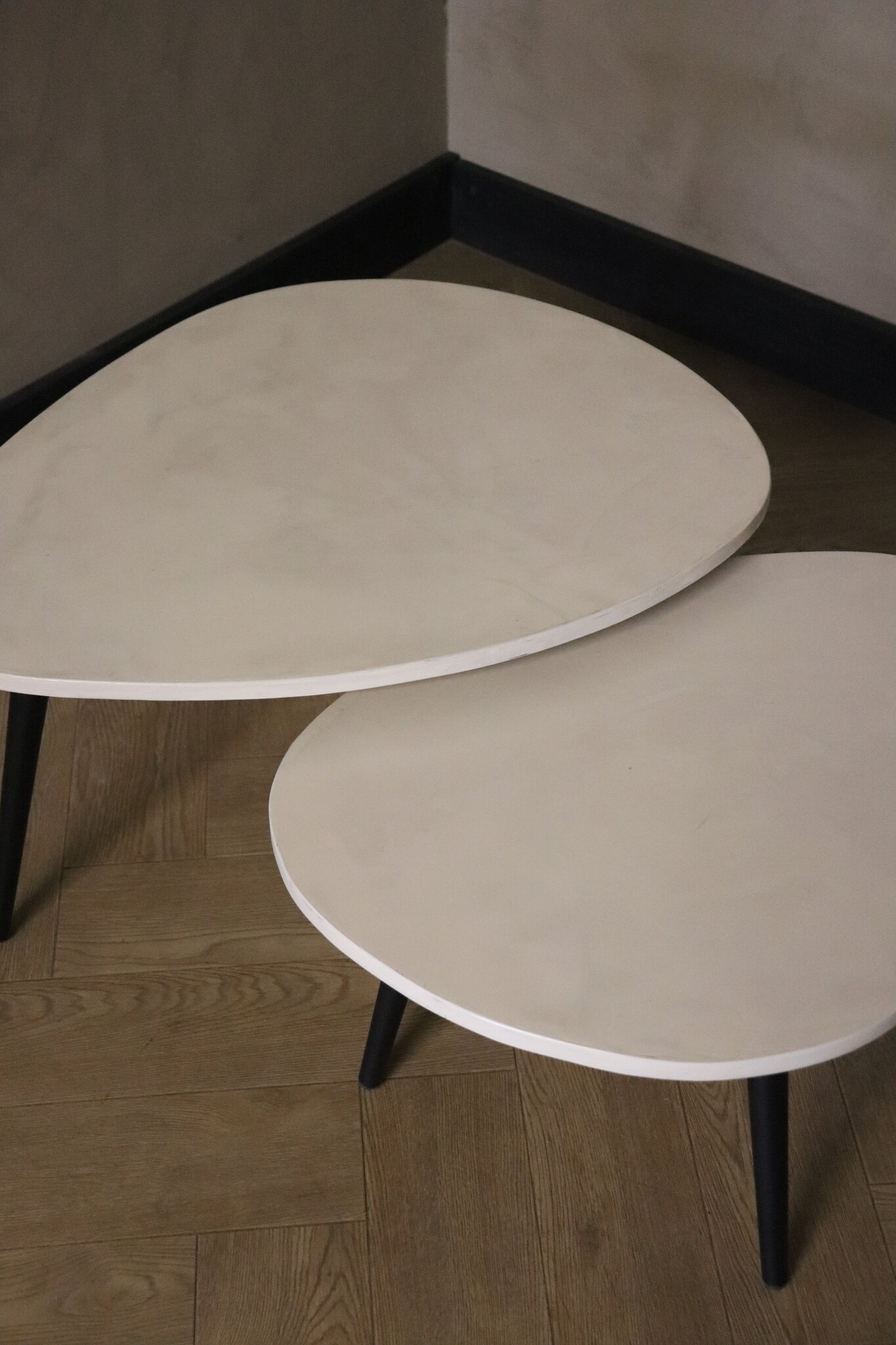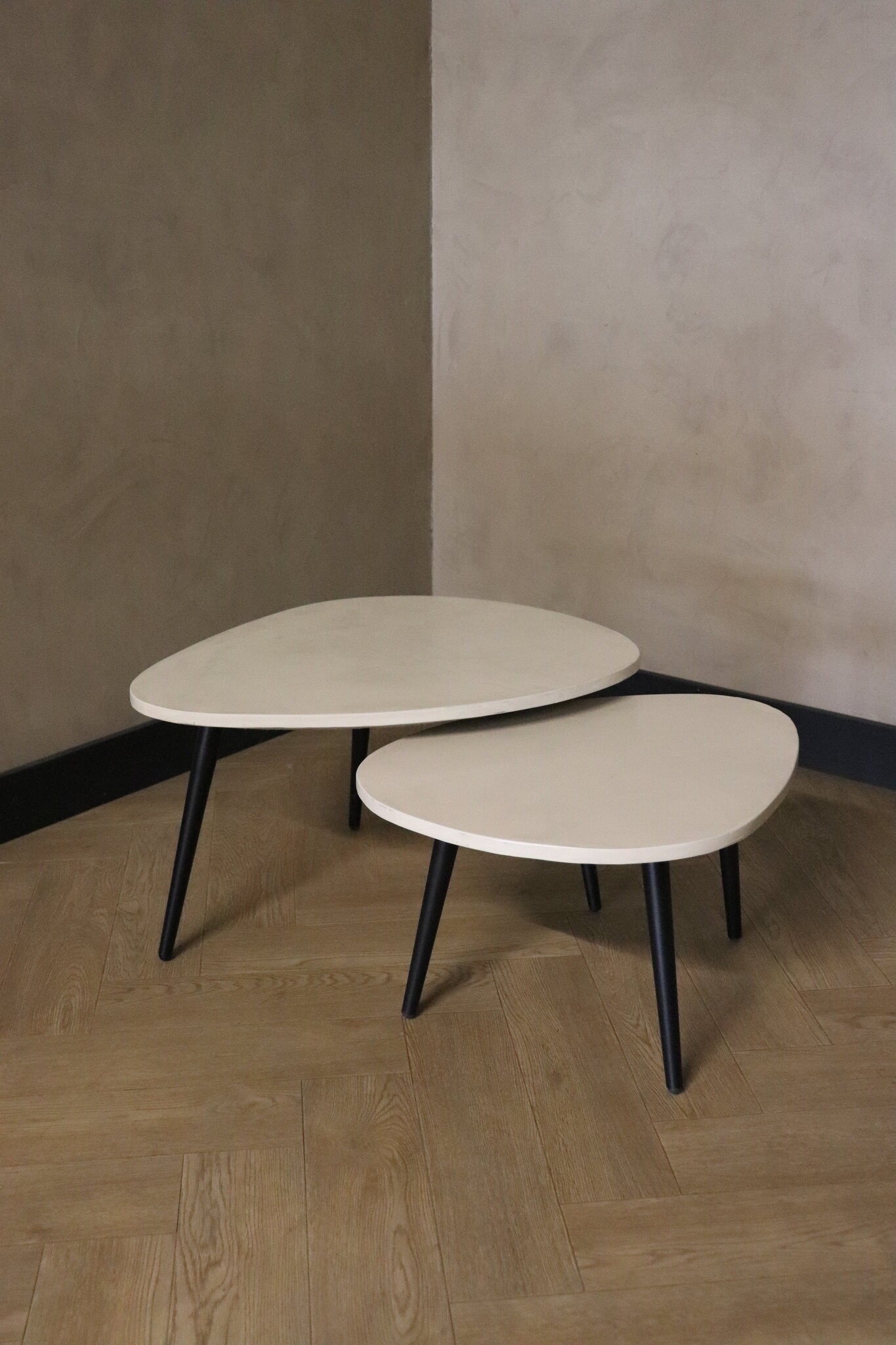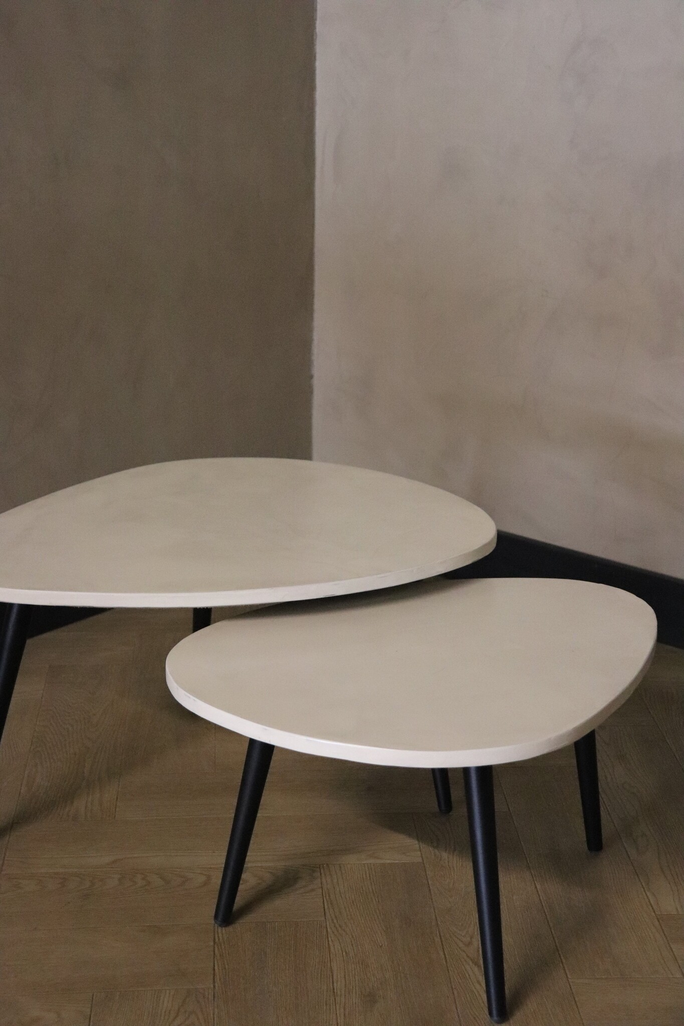 Ons organisch salontafel set van beton ciré in zandkleur is een uitstekende keuze voor liefhebbers van zachte tinten en natuurlijk materialen.